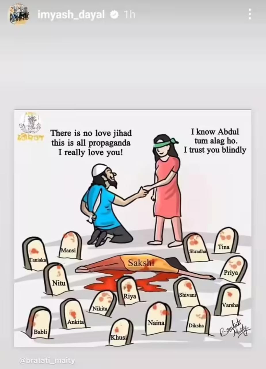 Yash Dayal who posted this islamophobic picture on his insta is now facing serious allegations of mentally, emotionally and physically abusing a woman under the false promise of marriage. pic.twitter.com/ylFaELYSmj