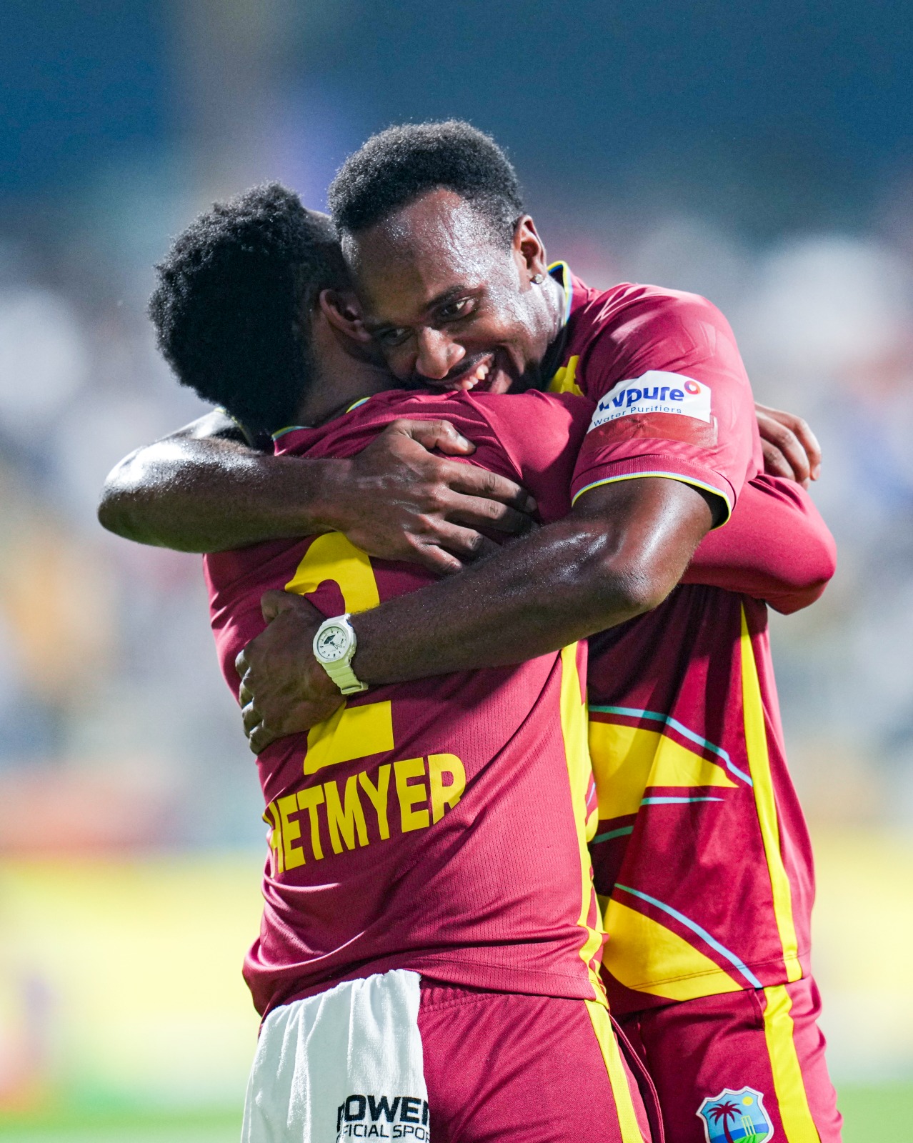 पहले बैटिंग करते हुए वेस्टइंडीज की तरफ से शिमरन हेटमायर ने 34 गेंदों में सर्वाधिक 85 रन बनाए। उन्होंने टी20 वर्ल्ड कप में वेस्टइंडीज के लिए सबसे तेज फिफ्टी लगाई। इस दौरान उन्होंने 7 चौके और 7 छक्के लगाए।