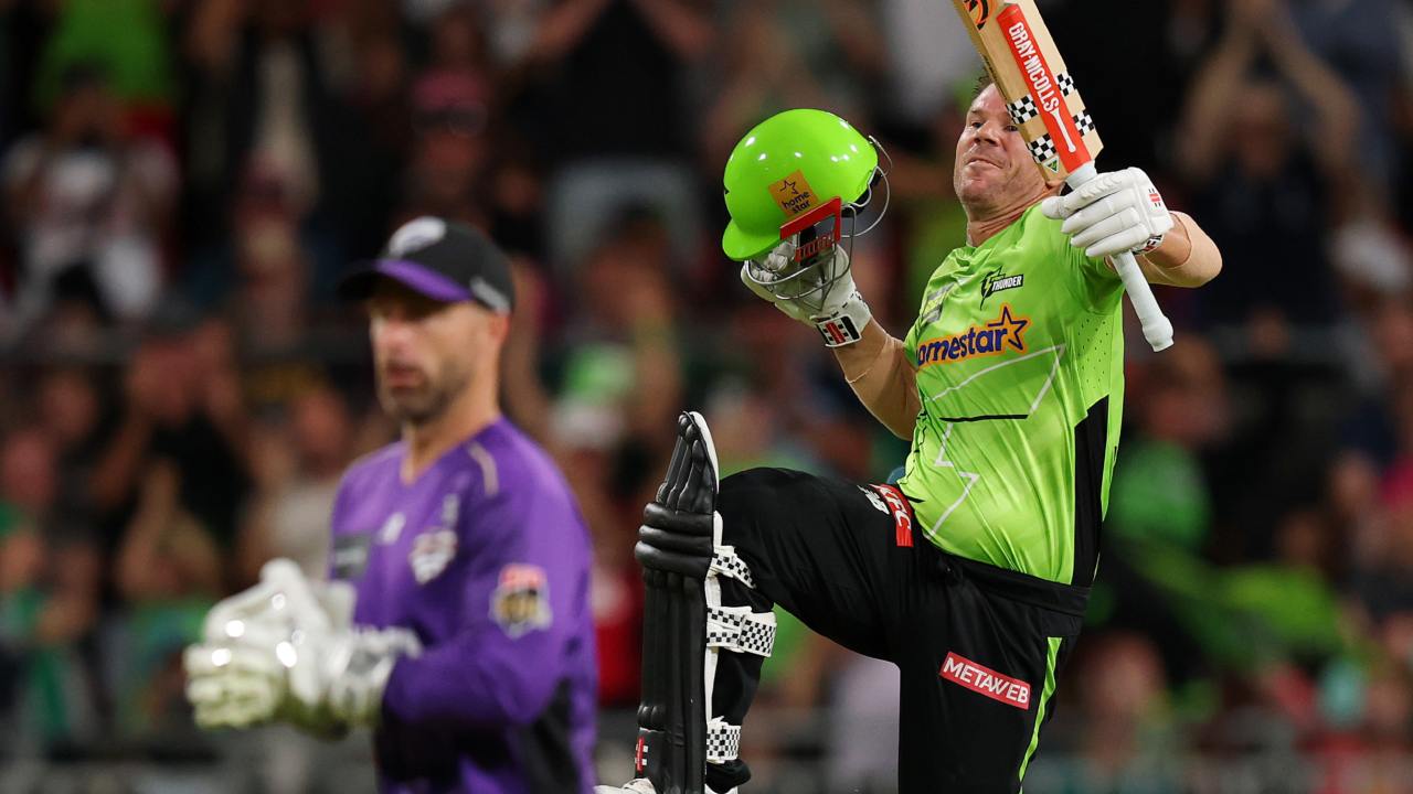 डेविड वॉर्नर बिग बैश लीग 2025-26 में सिडनी थंडर के लिए खेल रहे हैं। उन्होंने होबार्ट हरिकेंस के खिलाफ लीग के 21वें मुकाबले में शानदार पारी खेलते हुए शतक जड़ा।