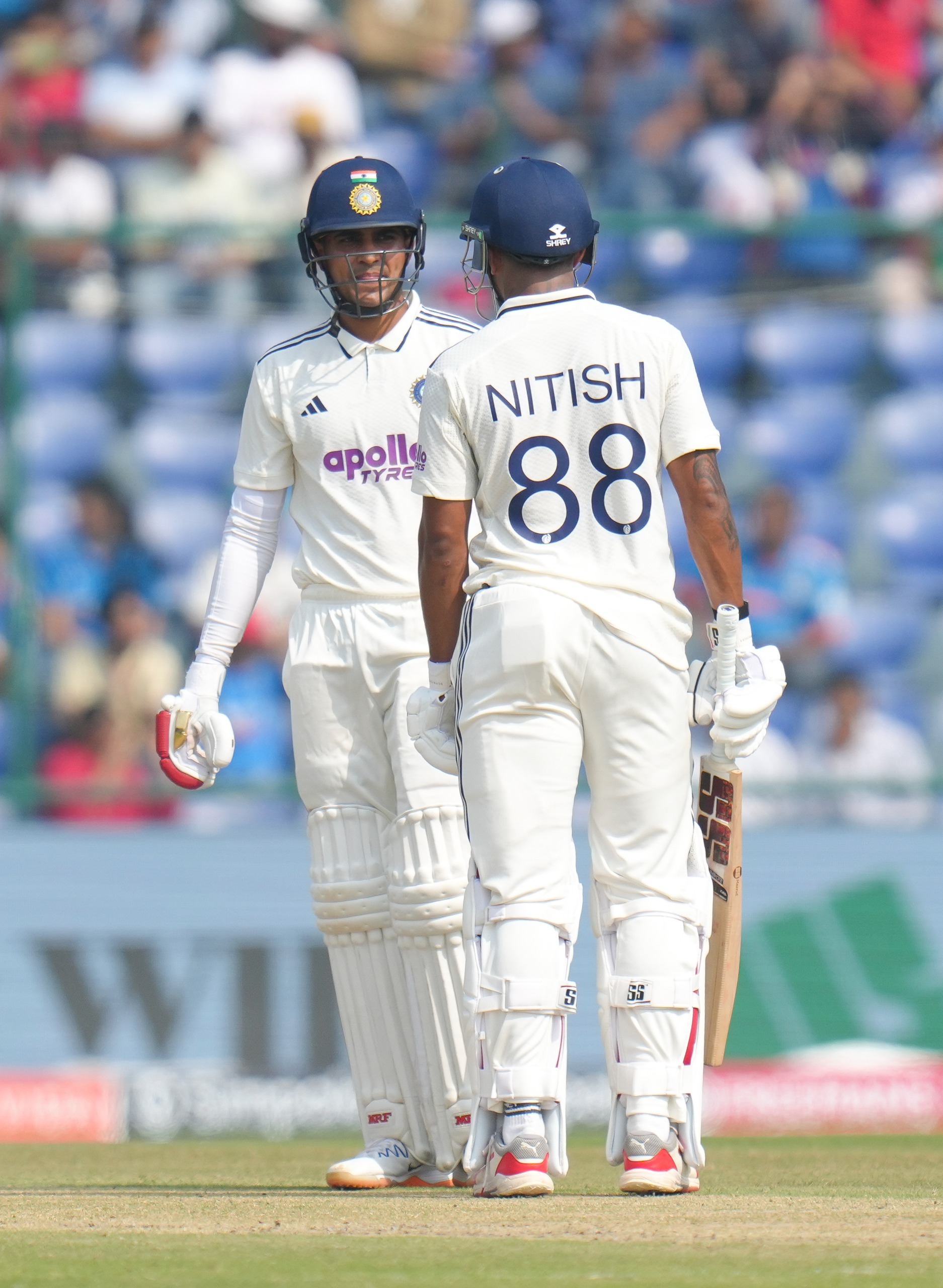 दिल्ली टेस्ट में भारत के लिए जायसवाल-राहुल ने पहले विकेट के लिए 58 रनों की, जायसवाल-सुदर्शन ने दूसरे विकेट के लिए 193 रनों की, जायसवाल-रेड्डी ने तीसरे विकेट के लिए 74 रनों की, रेड्डी-गिल ने चौथे विकेट के लिए 91 रनों की, और जुरेल-गिल ने पांचवें विकेट के लिए 102 रनों की साझेदारी की।