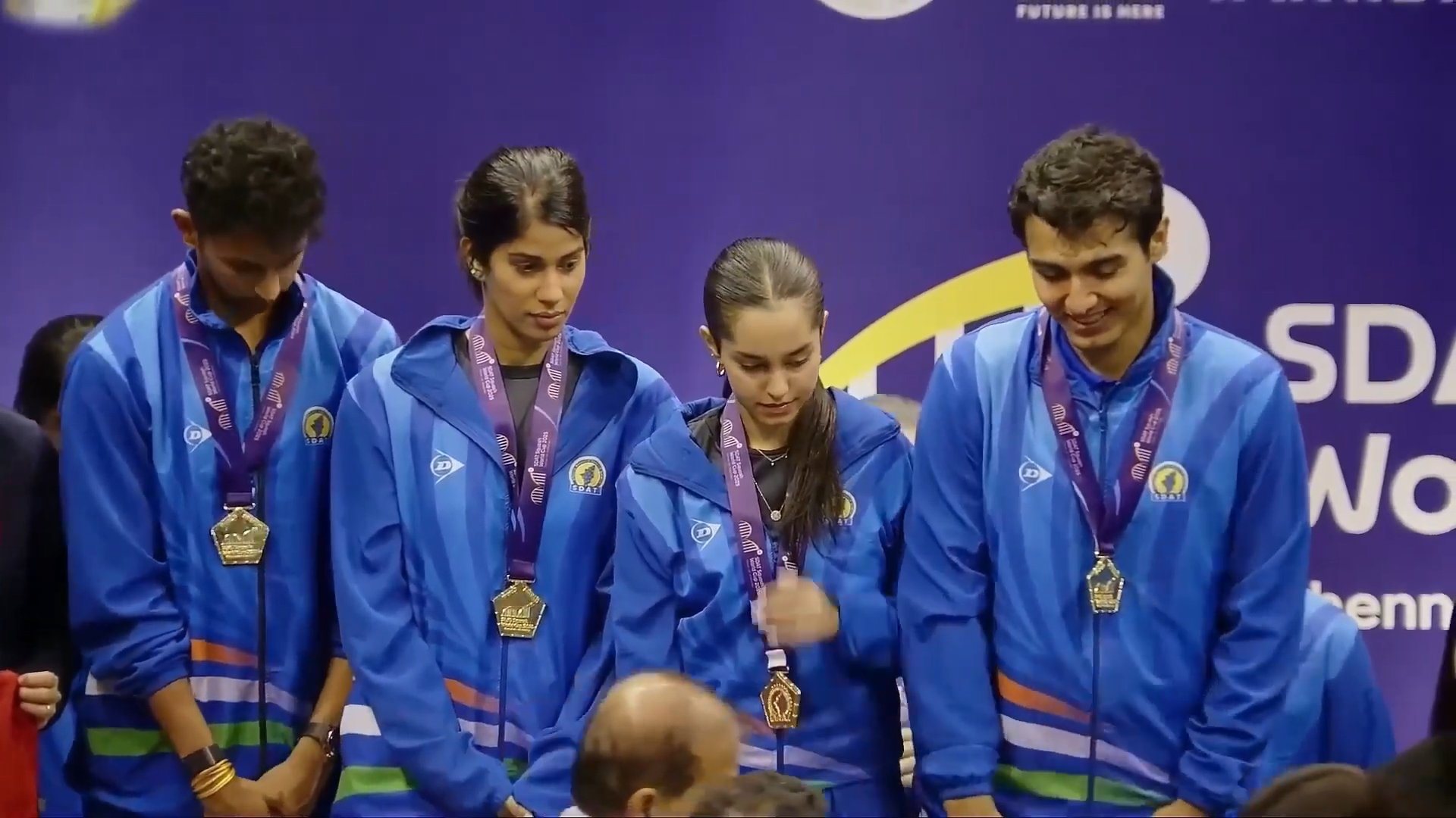 Congratulations to the Indian Squash Team for creating history and winning their first-ever World Cup title at SDAT Squash World Cup 2025!