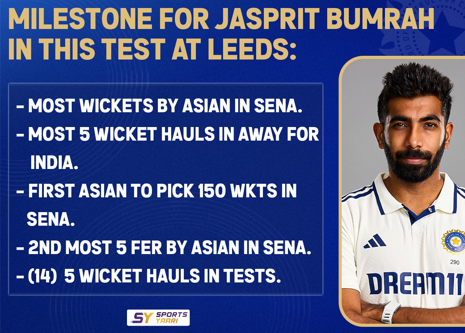 जसप्रीत बुमराह ने हेडिंग्ले में इंग्लैंड के खिलाफ 5 विकेट लेकर टेस्ट क्रिकेट में रिकार्ड्स की झड़ी लगा दी है।