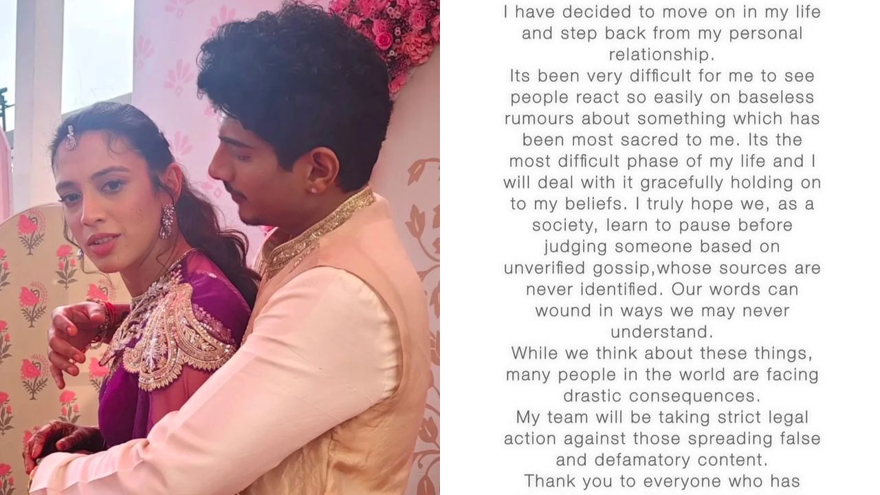 वहीं संगीतकार पलाश मुच्छल ने पुष्टि की कि उन्होंने रिश्ते से आगे बढ़ने का फैसला किया है। मुच्छल ने अपमानजनक अफवाहें फैलाने वालों के खिलाफ कानूनी कार्रवाई की भी चेतावनी दी।