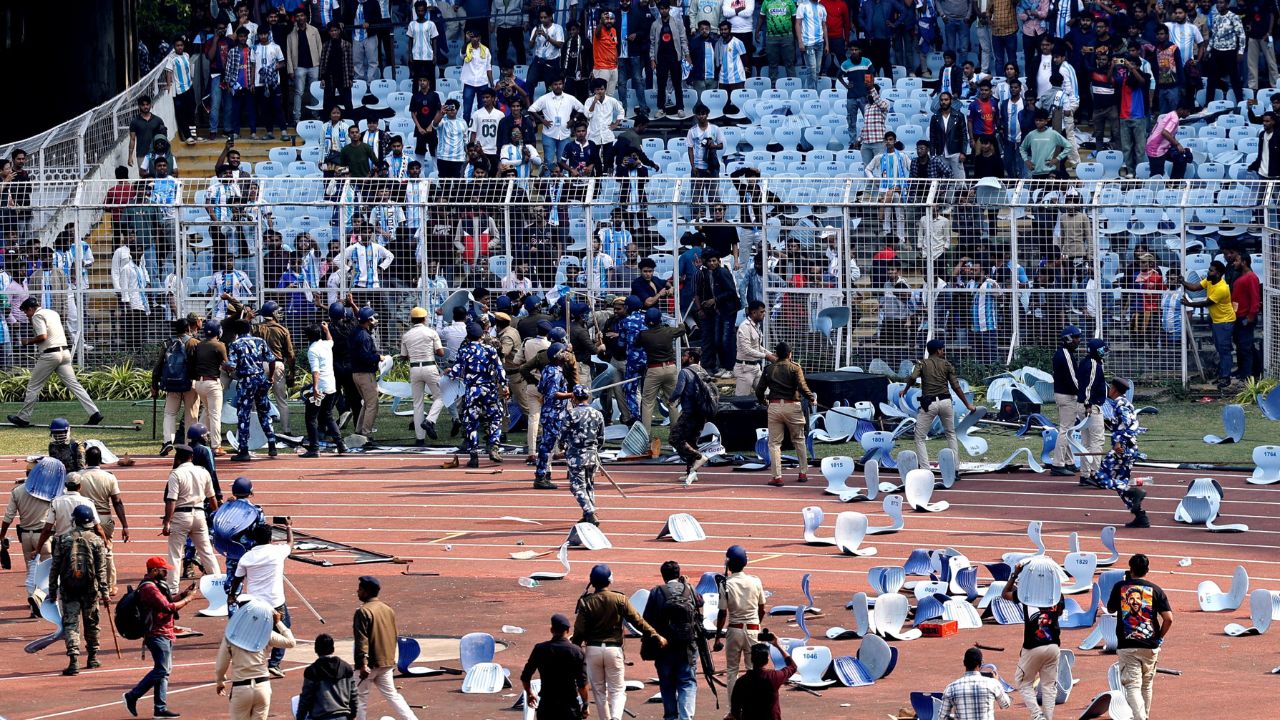 Lionel Messi Event Chaos: कोलकाता का सॉल्ट लेक स्टेडियम अर्जेंटीना के सुपरस्टार लियोनल मेसी की एक झलक पाने की उम्मीद में आए फैंस से खचाखच भरा था, लेकिन कुछ ही मिनटों में उनकी उम्मीद निराशा और अफरा-तफरी में बदल गई।