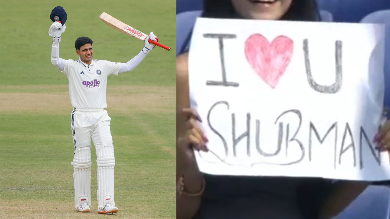 दूसरे टेस्ट मैच का दूसरा दिन शुभमन गिल के लिए यादगार रहा, वह दमदार शतक जड़ने में कामयाब रहे। इस दौरान स्टेडियम में मौजूद फैंस में से एक लड़की ने गिल को डेडिकेटेड एक प्लेकार्ड दिखाया, जो कैमरों में कैद हो गया।