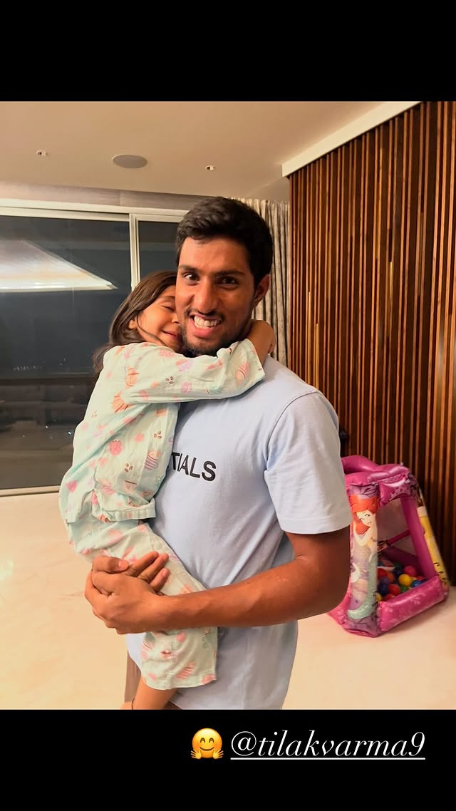 तिलक इन तस्वीरों में रोहित शर्मा की बेटी समायरा के साथ नजर आ रहे हैं। रितिका द्वारा शेयर की गईं ये तस्वीरें सोशल मीडिया पर जमकर वायरल हो रही हैं।